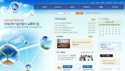 홈 > 포트폴리오 > 웹사이트 포트폴리오 Website Webzine Submission Solution Mobile YGF ygf.or.kr Client YGF URL ygf.or.kr Overview - 재외동포 청년과학기술자들과 국내 청년과학기술자들 간 21세기 과학기술 비전에 대한 상호교류의 장을 마련 - 한민족 청년과학기술자들 간에 네트워킹 협력 체계 구축을 통하여 21C 지식기반 사회를 선도하는 Global Leader로서의 자질 함양 및 첨단과학기술의 상호 교류에 증진할 수 있는 기반을 다짐 - 재외동포 청년과학기술자들이 모국 과학기술 발전의 현주소를 확인하고 교류를 통하여 민족 유대감을 높임 목록